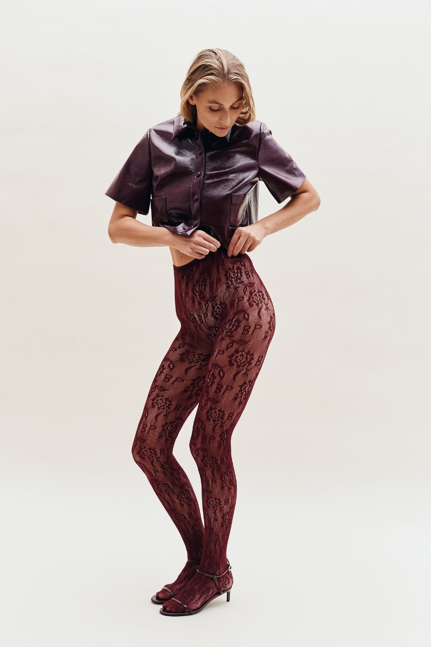 Delicate without being fragile, its rose-lace motif winds across the leg with a composure that feels almost architectural. Woven into the pattern is Baum und Pferdgarten’s subtle “BP” monogram, a quiet nod to the brand’s playfulness, visible only to those who look closely enough. Available in Black, Ivory and Bordeaux, the palette mirrors the brand’s Pre-Spring 2026 holiday collection: moody, charming, and versatile enough to follow you from the office soirée to that end-of-year rooftop gathering you promised you wouldn’t stay too long at.