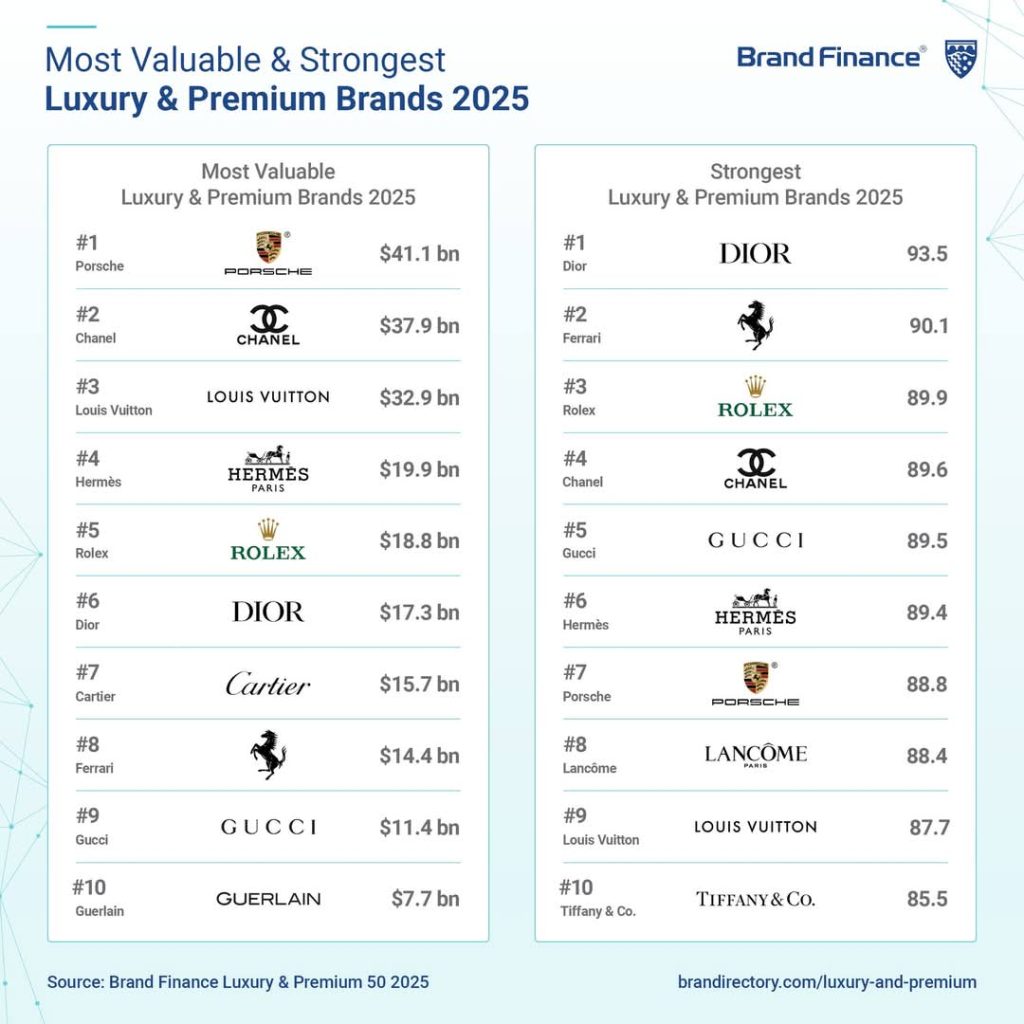 In a plot twist that would make even the most stoic fashion executive do a double take, Chanel has leapfrogged over Louis Vuitton to become the world’s second most valuable luxury brand, per Brand Finance’s 2025 rankings. Behind only Porsche (yes, the car), Chanel posted a jaw-dropping 45% surge in brand value—making it the fastest climber on the luxury ladder this year.