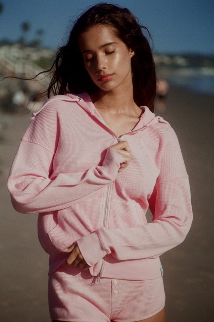 The collection debuts a new thermal waffle fabric that feels like what would happen if your favorite blanket got a designer upgrade. Designed to “fade like the perfect vintage find,” each piece still carries that sun-drenched, Malibu nostalgia Frankies is known for — just wrapped in fabrics you can actually wear when it’s below 25°C.
