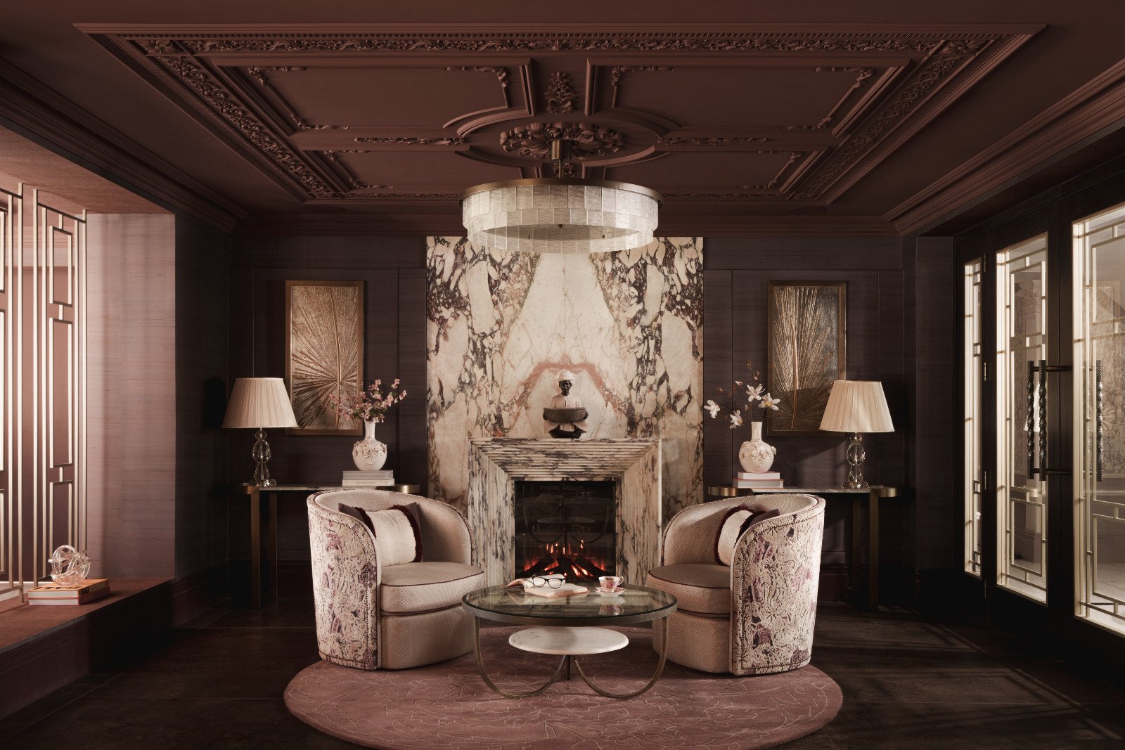 The moody, textural elements of a living room in a Hertfordshire, England property designed by Vastu Interior Design