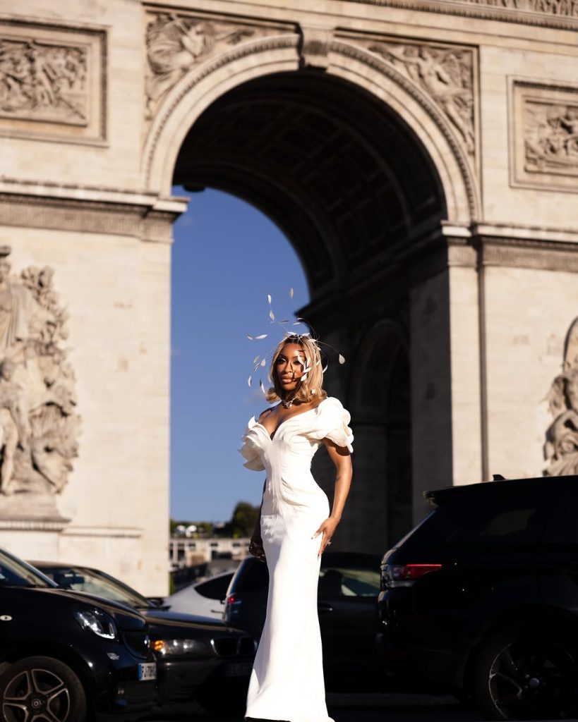 Leave it to Jackie Asamoah to show up at Stéphane Rolland’s Fall/Winter 2025–2026 show and make everyone else look like they just came for the croissants. The digital creator didn’t just attend Paris Haute Couture Week — she entered a new style dimension in a breathtaking white Giorgia Viola gown that might’ve been handcrafted by fashion angels themselves.