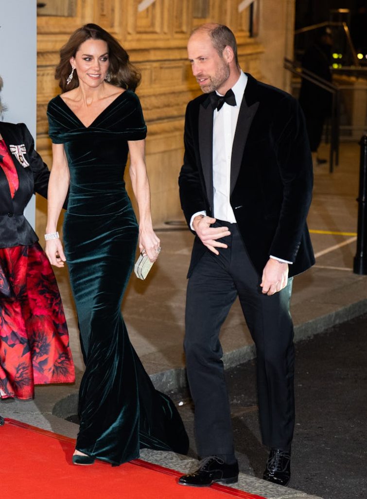 Her earrings, however, told a deeper story. The Greville diamond chandeliers, crafted by Cartier and once gifted to Queen Elizabeth by Dame Margaret Greville, added a layer of royal memory to the look. Middleton last wore them in 2023, and their reappearance felt intentional, a quiet nod to continuity. Prince William echoed her palette with a deep green velvet tuxedo that stayed neatly within the lines of tradition.