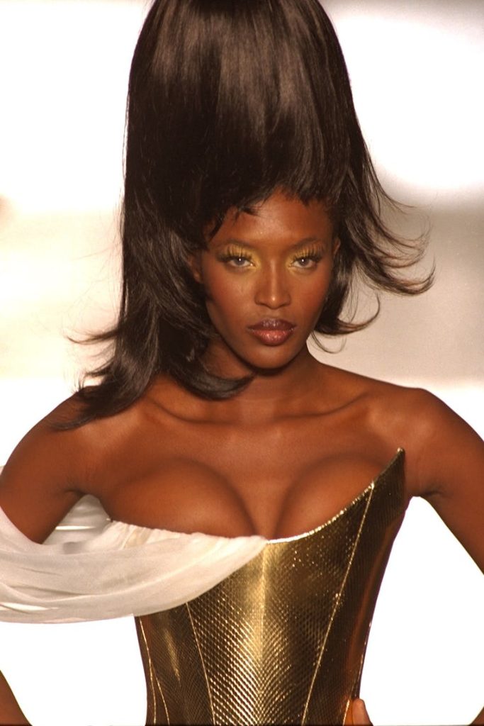 But here’s where it gets even better — Naomi Campbell wore the exact same look on the 1996 runway. Back then, she paired it with gold eyeshadow, sky-high hair, and that unmistakable McQueen intensity. For both women, the dress embodied divinity — equal parts power, poise, and performance.