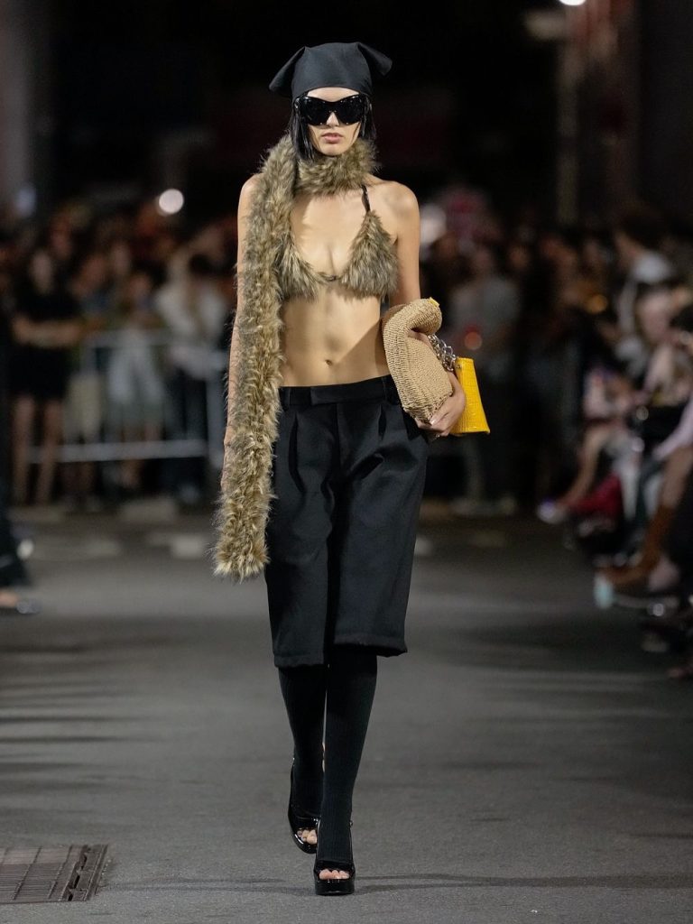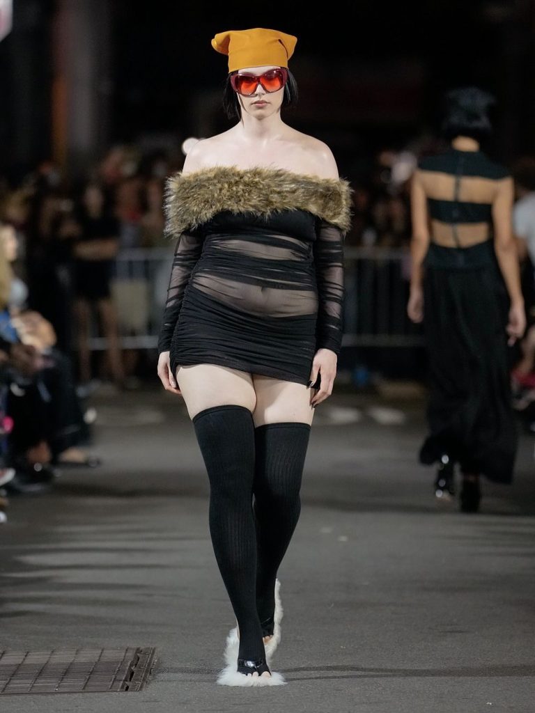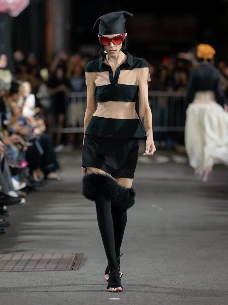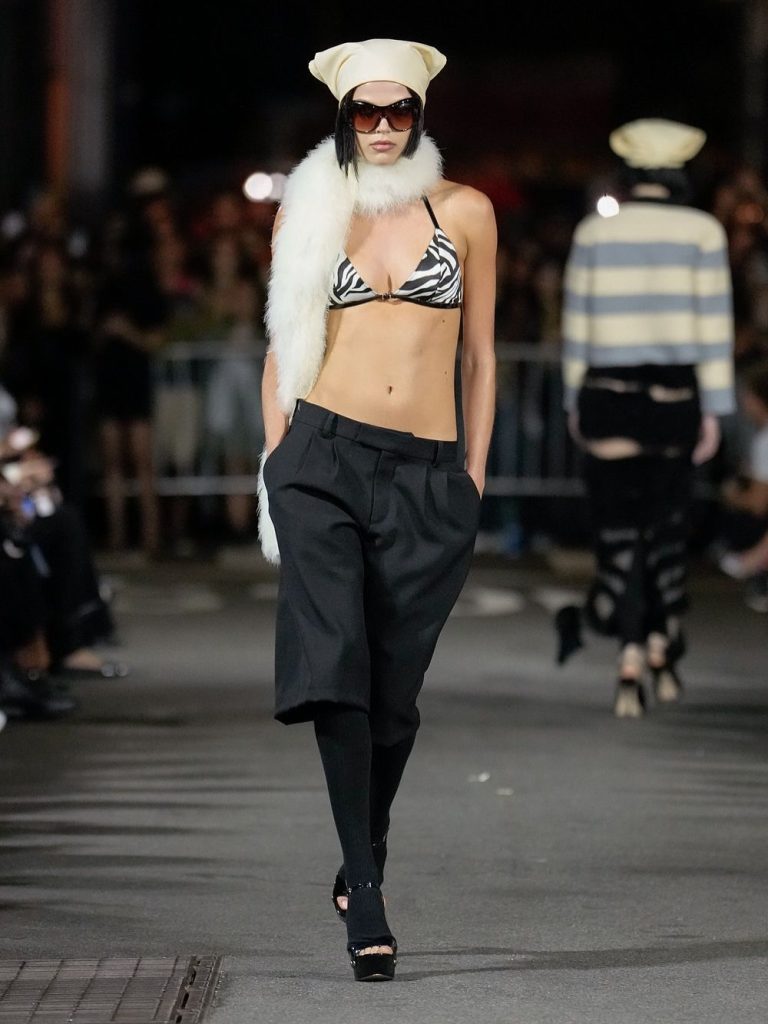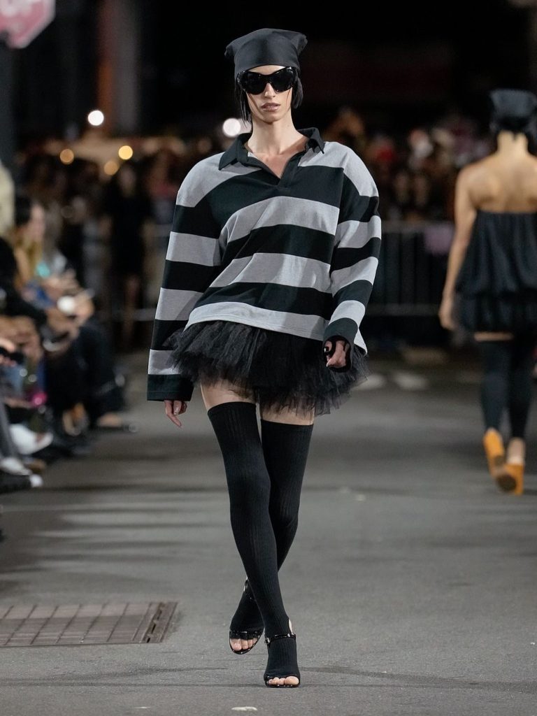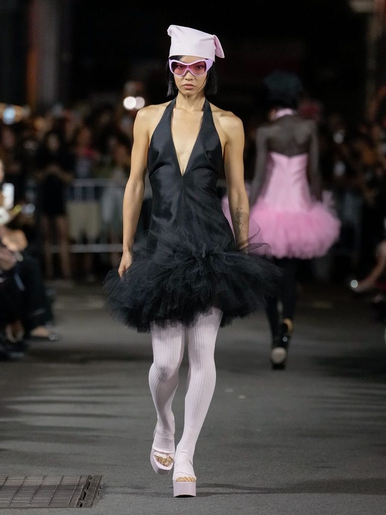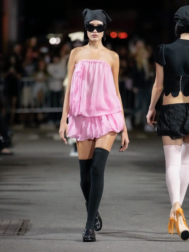 The evolution didn’t stop there. Paloma Wool added mesh stirrups to its SS26 lineup in Paris, and Paralía (yes, the actual Pilates sock brand) went full fashion girlie, pairing them with crochet dresses and heels—because who said reformer socks can’t walk a runway?