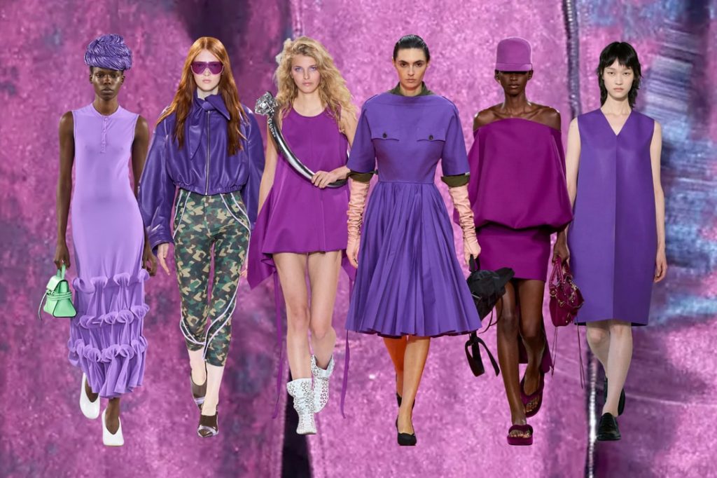 From Copenhagen to Milan, SS26 fashion is bold, playful, and extra. Tassels, flyaway neck scarves, elevated flip-flops, and deep purple dominate runways and street style alike, while color clashes and textured fabrics add drama.