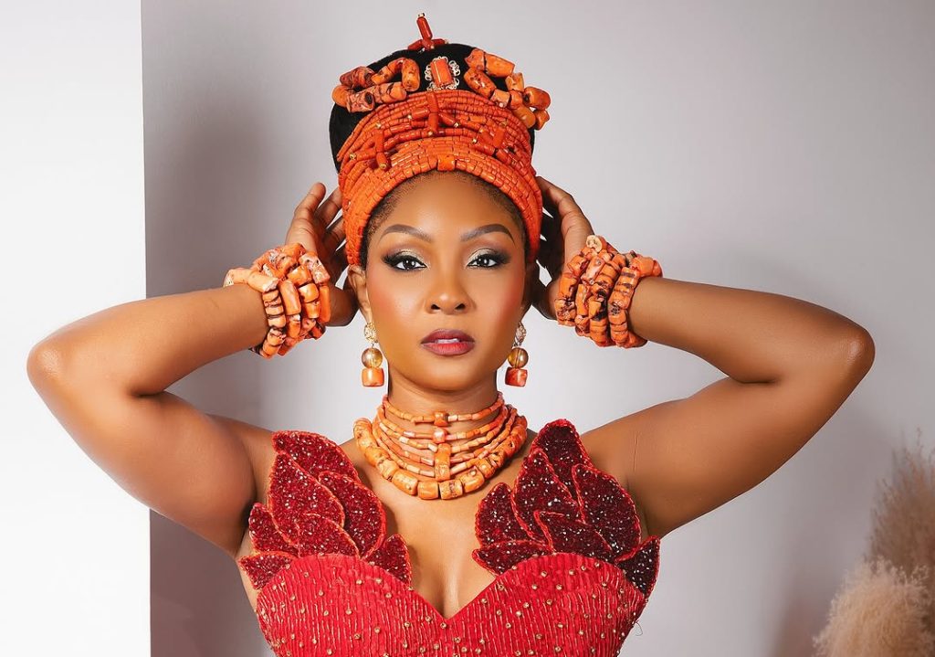 Osas Ighodaro turned heads at the Edo premiere of 3 Cold Dishes in a bold red gown paired with traditional coral beads.
