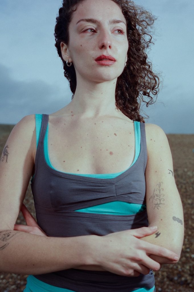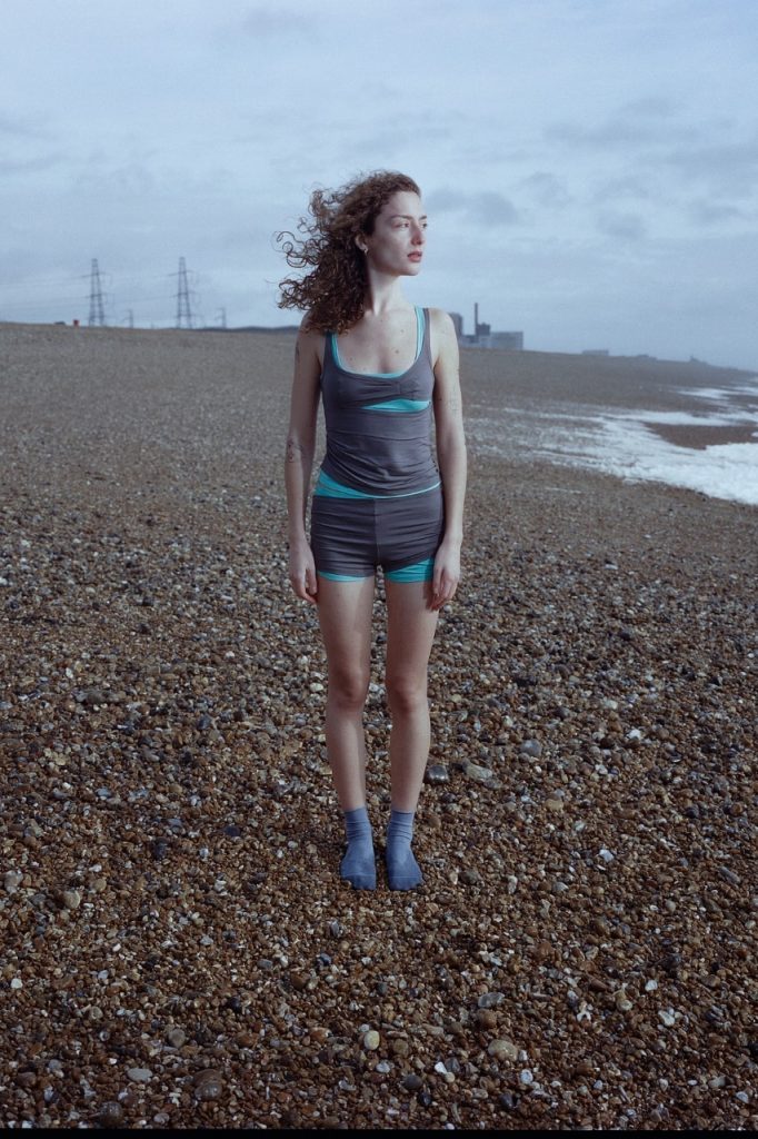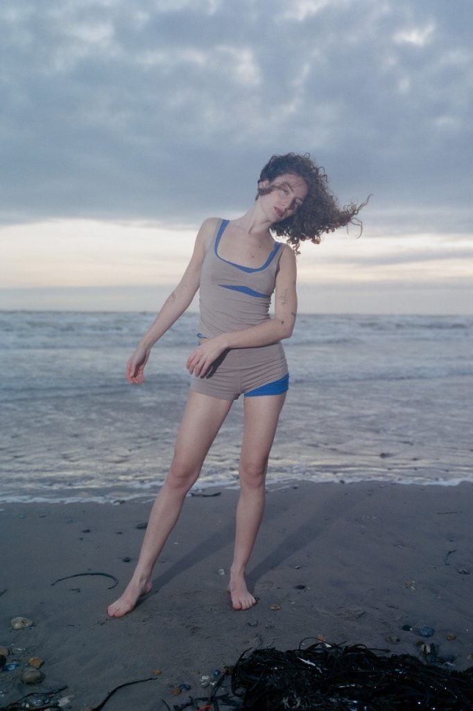 The pieces match that mood with intentional ease. Made from eco bamboo jersey that drapes like a second skin, the collection arrives in layered blues and greys that echo the coastline. Micro shorts, cut-out tanks, fluid separates and silhouettes designed to move with you all reflect the brand’s signature blend of comfort and subtle sensuality. Everything looks unhurried, lived-in, made for slipping into rather than performing in. And as always, This Belongs To builds its beauty on conscious choices, tying softness to sustainability.
