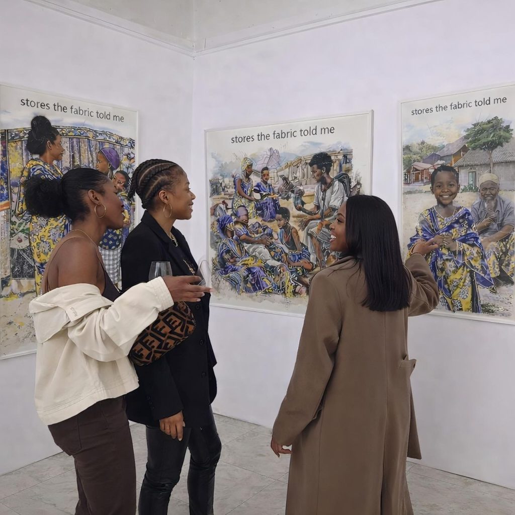 Stories the Fabric Told Me, a solo presentation by Goodluck Jane, ran from May 5 to 12, 2024 at Casildart Gallery. Over the course of the week, the exhibition drew a steady mix of visitors collectors, curators, curious passersby each spending time with paintings that seemed to ask for more than a quick glance.